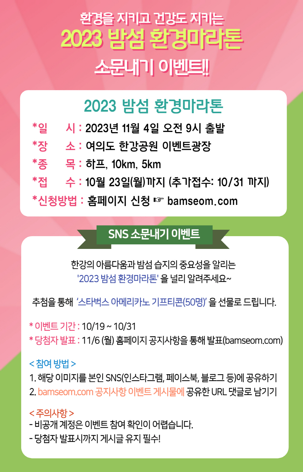 2023 밤섬 환경마라톤 소문내기 이벤트(스타벅스 50명추첨)
